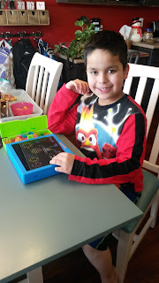 Christmas morning was pretty fun, the kids had a really good day. They opened their stockings when they got up and were excited to get Pokemon cards, candy, rubix cubes and Shalise got a bunch of Shopkins. Then they opened their gifls from Santa, they all got a robotic pet. The two little kids got kittens and Carson got a Dino. The boys got quadcopters and Shalise was super excited to get and Elf on the Shelf from Santa. She has been talking about it non stop. Shalise got an Easy Bake Oven from Nana and Gramps, Marcus got a Lite Brite and Twister Game from them and Carson got a nerf gun and cool car. Nono and Nona gave Carson a snowboard, Shalise and Marcus got Bead making machines. It also snowed A LOT overnight so Jake spent time outside plowing people's driveways. I think he had more fun doing that than anything else. We spent the rest of the day just hanging out and playing with toys, the next day too. It was a very relaxing Christmas. We went to dinner at Nono and Nona's the day after Christmas and that was fun to spend time with family. They gave Jake and I big water containers for our emergency preparedness so that was nice.